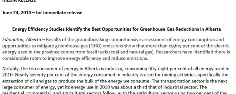 Energy Efficiency Studies Identify the Best Opportunities for Greenhouse Gas Reductions in Alberta